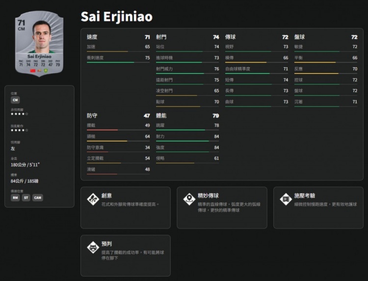 9月16日讯 FC26中国球员评分公布,塞尔吉尼奥、武磊71分居首,韦世豪、吴曦、蒋光太、高天意等7将70分随后。另外,近期崭露头角的王钰栋获评60分。